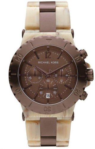 Stainless steel case with a horn acetate bracelet with brown ion-plated center links Fixed brown ion-plated bezel Brown dial with brown hands and index hour markers Arabic numeral marks the 12 oclock position minute markers around the inner rim Dial Type Analog Date display at the 6 oclock MK: Watch Do not Miss!! Stainless steel case with a horn acetate bracelet with brown ion-plated center links Fixed brown ion-plated bezel Brown dial with brown hands and index hour markers Arabic numeral marks the 12 oclock position minute markers around the inner rim Dial Type Analog Date display at the 6 oclock ... MK: Watch