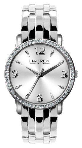 Polished stainless steel case and bracelet with crystal bezel ring Silver dial with silver indices Second-hand feature Fold-over clasp with double push-button Water-resistant to 10 M (33 feet) Haurex Italy Women's XS385DSS Giglio Stainless Steel with Crystals Silver Dial Bracelet Watch Do not Miss!! Polished stainless steel case and bracelet with crystal bezel ring Silver dial with silver indices Second-hand feature Fold-over clasp with double push-button Water-resistant to 10 M (33 feet) ... Haurex Italy Women's XS385DSS Giglio Stainless Steel with Crystals Silver Dial Bracelet Watch