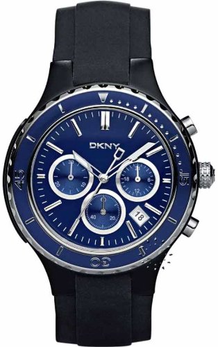 Black ion-plated stainless steel case with a black rubber strap. Blue ion-plated bezel. Blue dial with silver-tone hands and index hour markers. Minute markers around the outer rim. Date display appears between the 4 and 5 o'clock position. Chronograph - three sub-dials displaying: 24 hours, 30 minuDKNY Blue Dial Chronograph Mens Watch NY1469 Do not Miss!! Black ion-plated stainless steel case with a black rubber strap. Blue ion-plated bezel. Blue dial with silver-tone hands and index hour markers. Minute markers around the outer rim. Date display appears between the 4 and 5 o'clock position. Chronograph - three sub-dials displaying: 24 hours, 30 minu... DKNY Blue Dial Chronograph Mens Watch NY1469